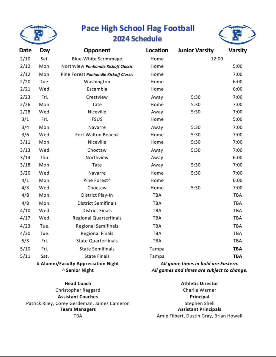 Source : twitter.comPace High School Flag Football | Pace FL
